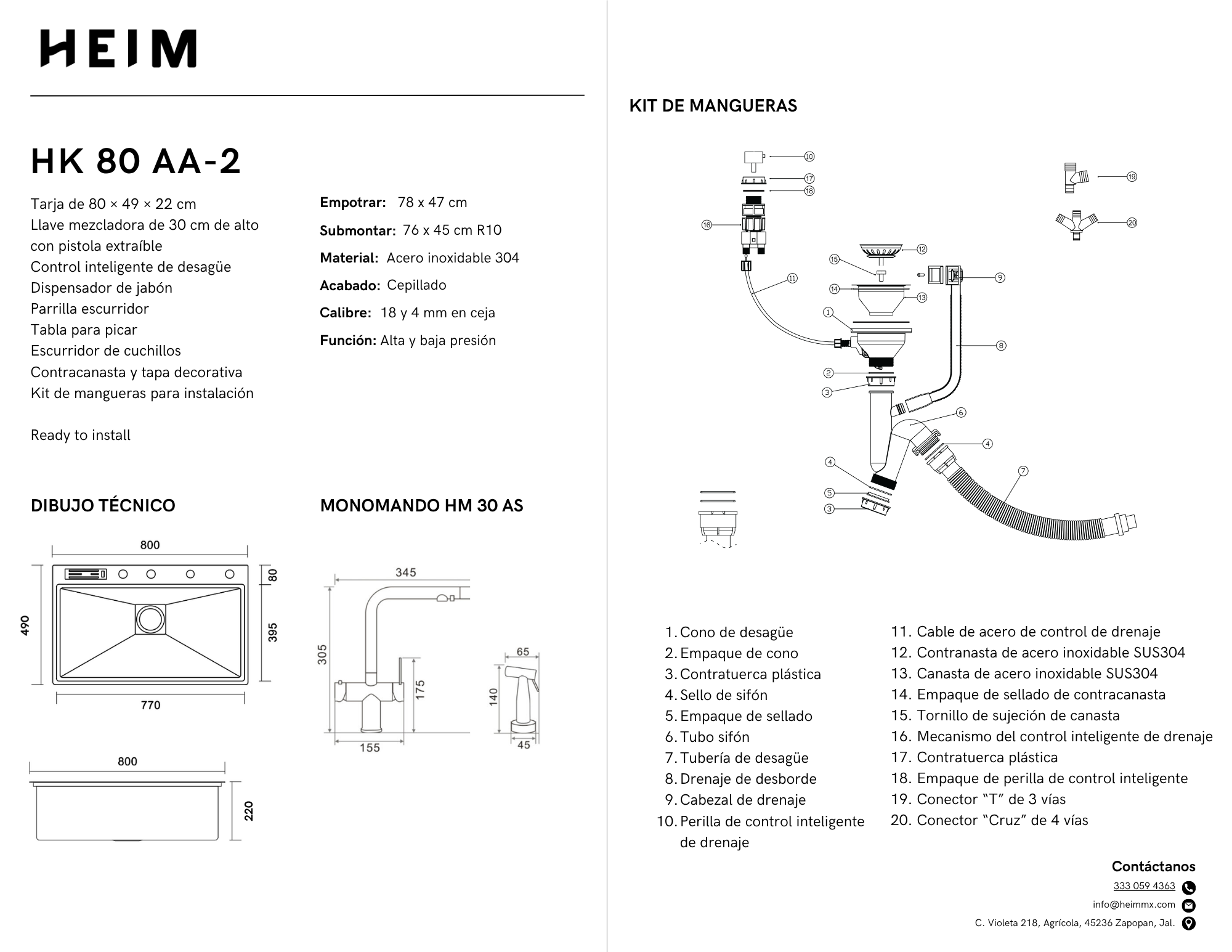 TRANSFORMA TU COCINA CON NUESTRO KIT HK 80 AA-2: DISEÑO DE UNA SOLA TINA, IDEAL PARA QUIENES BUSCAN COMODIDAD Y MODERNIDAD EN SUS COCINAS.