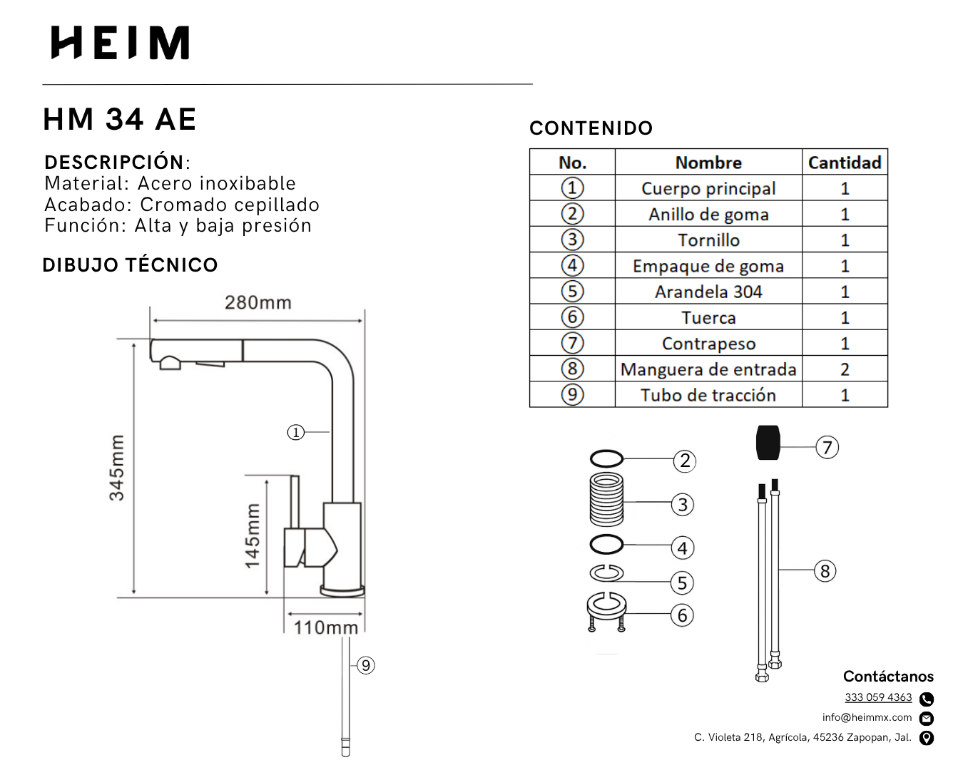 Un clásico, HM 43 AE llena todas las expectativas. Fabricado en acero inoxidable y cabezal extraíble.