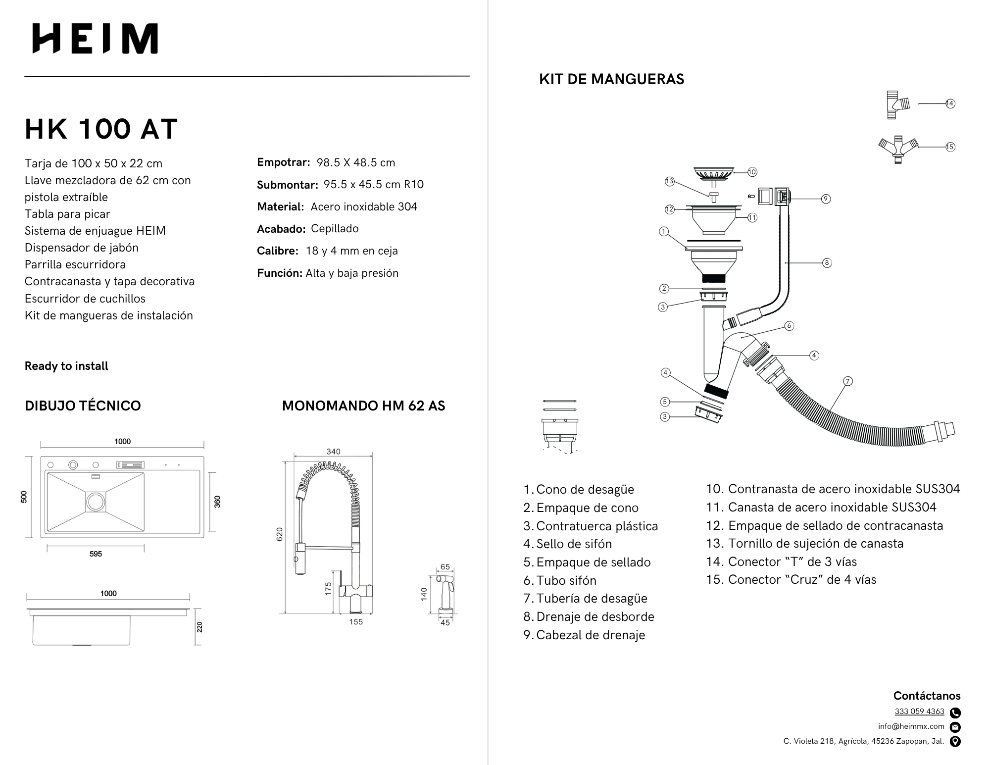 NUESTRO MODELO HK 100 AT ES PERFECTA PARA COCINAS GRANDES, PARA LOS AMANTES DE UNA SOLA TINA Y DISEÑOS SOFISTICADOS Y FUNCIONALES.