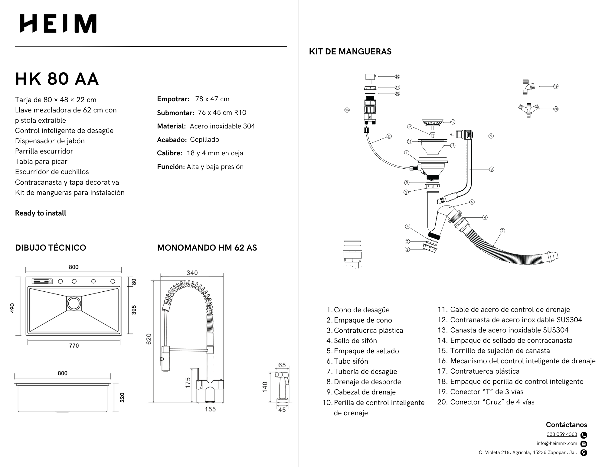 UN TOQUE DE DISTINCIÓN, PARA LOS AMANTES DE UNA SOLA TINA NUESTRO MODELO HK 80 AA ES EL INDICADO, TENDRÁS ELEGANCIA Y FUNCIONALIDAD COMO NUNCA ANTES.